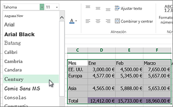 2)Haga clic en la flecha situada junto a fuente y elija otra fuente.
